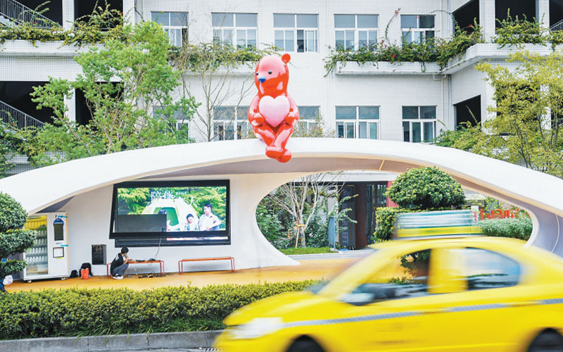 近日,兩江新區出口加工區公交站點,一只火紅色的PUPU熊抱著一顆心,坐在俯看像一塊礁石的公交站臺的頂棚上——這是該站臺引入的藝術作品《心》。目前,這個由兩江新區打造的智慧公交站臺已基本完工,配備有自動售賣機、攝像頭、LED多媒體全彩屏及公交線路信息屏,為市民提供了更好的出行體驗,促進寸灘國際新城品質提升。