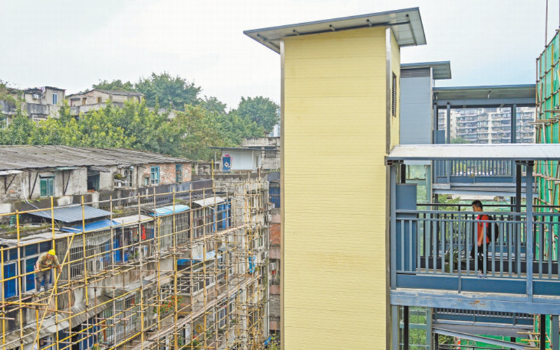 該項目總投資約1.3億元,將對71棟居民樓及商業門面的樓頂、墻面、窗戶及周邊環境進行改造,新增消防、路燈、休閑桌椅、健身設施等。項目預計明年6月建成投用,將極大改善當地居民的居住環境,提高他們的生活質量。記者 萬難 攝/視覺重慶