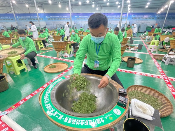 殺青、揉捻、做形、烘干……比賽現場,選手們聚精會神,使用來自永川的鮮茶葉為原材料,根據自己的思考制作出不同形狀、不同口感的茶葉。