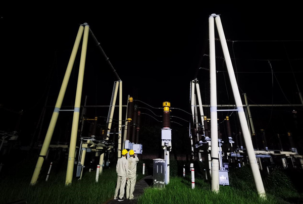 國網重慶北碚供電公司員工在梅花山變電站開展夜巡紅外測溫工作。黃渝攝