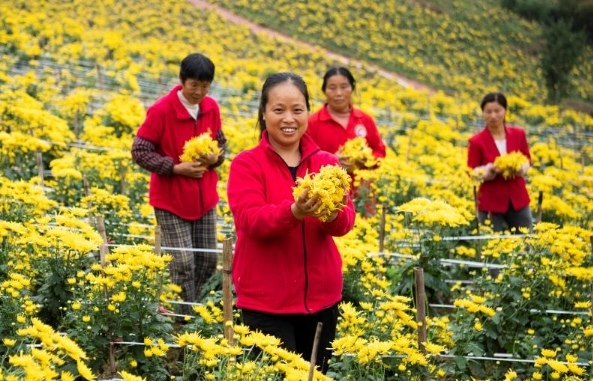 一是黃金林美麗田園養心鄉情游,建成兩大品牌園!熬呕ü取狈N植了300畝金絲皇菊,20余萬盆觀賞菊,“十里花果長廊”種植各類果樹1500畝,已打造成集觀光采摘、農業體驗、餐飲住宿、農耕文化、溫泉旅游為一體的鄉村旅游示范園、菊花知識科普園。