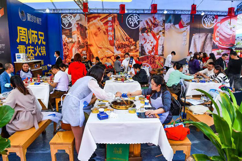 作為重慶火鍋節的獨有特色,今年的萬人火鍋宴集結了珮姐重慶火鍋、劉一手重慶火鍋、重慶秦媽火鍋、周師兄重慶火鍋、庖丁家鮮牛肉火鍋、后火鍋、怒火八零牛肉串串、豪渝火鍋、朱光玉火鍋館組成的“重慶火鍋天團”,還有重慶小天鵝火鍋、德莊大鍋、魯西肥牛、大虎老火鍋、簽小二火鍋串串等30多家重慶知名火鍋品牌,現場開燙。市民可一站式打卡體驗重慶頂流火鍋品牌,挑選喜愛的火鍋現場開燙,感受重慶火鍋獨特的文化魅力。