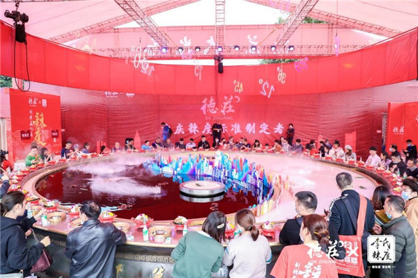 作為重慶火鍋的圖騰,在歷屆火鍋節上總能看見德莊大火鍋的身影,它代表了重慶火鍋包羅萬象,有容乃大的精神特性,傳遞重慶獨特的城市及飲食文化魅力。