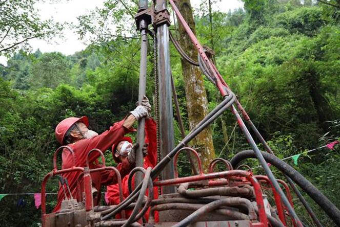 機組人員正在深溝中鉆井作業。西南物探鉆井工程中心供圖