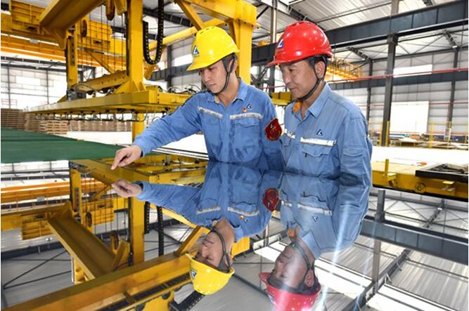 西南鋁壓延廠員工在檢查高級板表面質量。西南鋁供圖