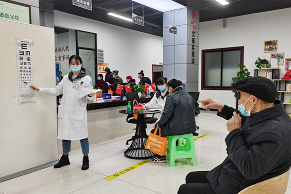 醫務人員為老年人進行視力檢查。璧山區衛生健康委供圖