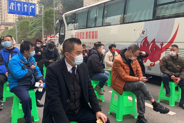 “為了保障大家的安全,我們都要求大家按照一米的距離分開坐,而且考慮到現在天氣比較冷,我們還為來參加無償獻血的人提供了熱水!鄙称簤螀^石井坡街道民政和社區事務辦負責人李靜說。