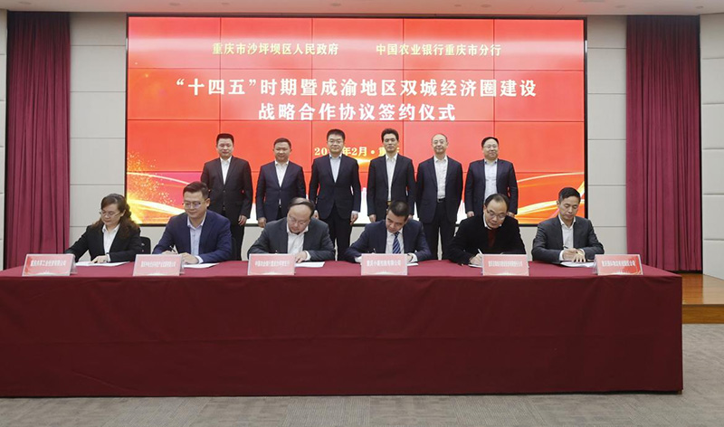 農行重慶市分行同沙坪壩區人民政府簽署戰略合作協議。農行重慶市分行供圖