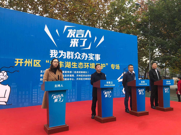 人民網重慶11月25日電 “你提問,我回答!”11月25日,開州區舉辦“發言人來了——我為群眾辦實事”“漢豐湖生態環境保護”專場發布活動走進開州區文峰街道,區生態環境局、區農業農村委、區城管局的3位“發言人”向市民一同交流漢豐湖的生態保護。
