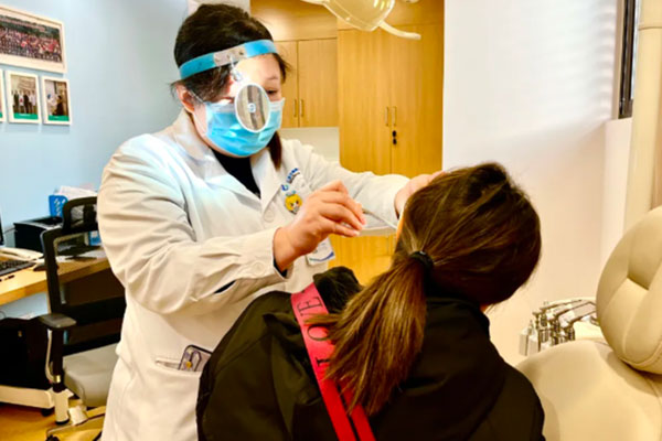 張朝梅查看患者情況。重慶仁品耳鼻喉醫院供圖