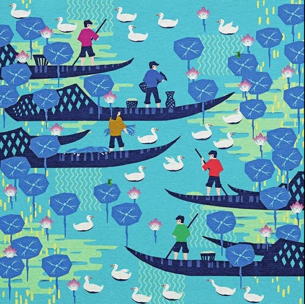 據了解,《清晨的荷塘》由中國民間文藝家協會選送,作品以平面化的方式,采取剪紙和插畫的技巧,融合農民畫和版畫的特點,用夸張簡練的造型表現新時代農村豐富多彩的勞動場景,展現了中國農村建設的美麗風貌。(劉政寧、謝佳潔)