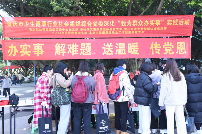 “近年來,我國新增HIV感染者年齡呈現青年老年‘兩頭翹’現象。特別是青年學生,處在性活躍期,加上性觀念開放,艾滋病感染率呈上升趨勢!敝貞c市衛生健康行業社會組織綜合黨委專職副書記魏鵬鈞介紹,針對這些現象,他們將艾滋病防控宣教活動報搬進高校,從而培養青年學生健康文明的生活習慣,增強自我保護意識和社會責任感。
