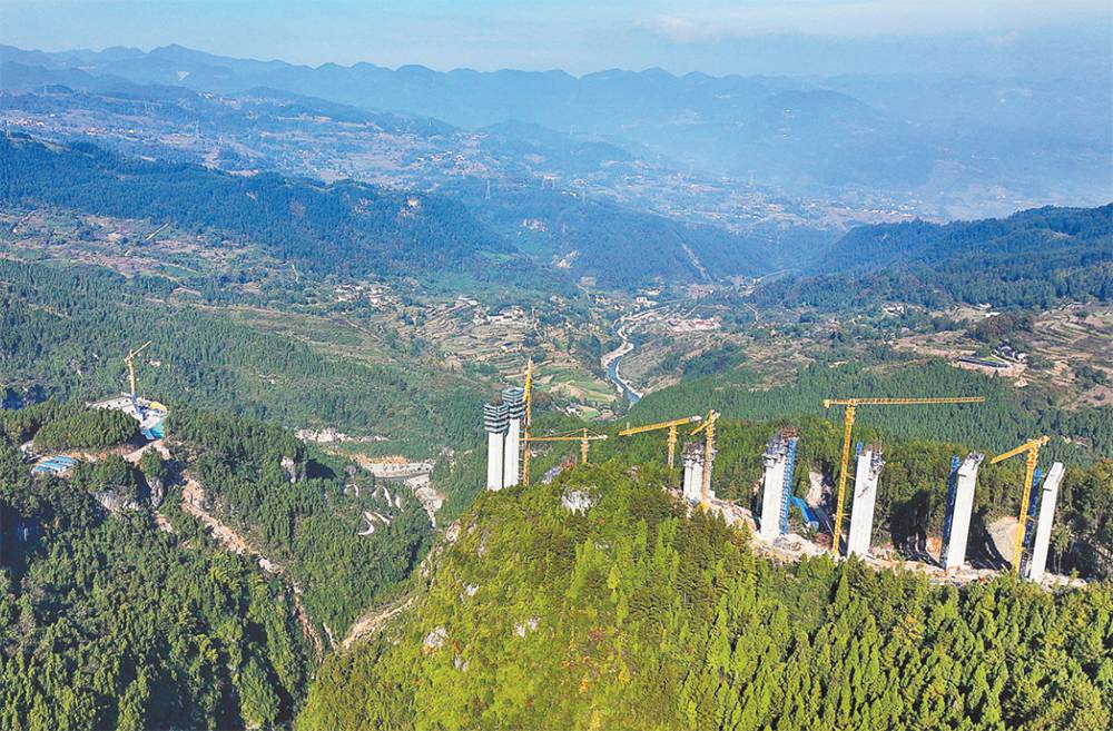 11月30日,渝湘復線高速公路建設正快速推進,沿線橋隧施工開始顯現雛形。渝湘復線高速公路全線總里程約280公里,由巴南至彭水、彭水至酉陽、武隆至道真(重慶段)3個項目組成,平均橋隧比80%。全線建成后,重慶將新增一條出海大通道,由中心城區前往酉陽及湖南方向較現有渝湘高速縮短里程47.8公里,重慶中心城區至貴陽沿河方向縮短里程79公里,將有效緩解既有渝湘高速公路擁堵情況,有效促進沿線地區旅游產業發展。圖為雙堡特大橋跨越崇山峻嶺。