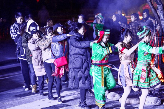 為了讓來訪者感受到最原滋原味的土家風情,中益定制游中還包含了特色篝火晚會:圍著暖暖火苗,跳起熱情奔放的土家擺手舞,喝著豪邁灑脫的“摔碗酒”,吃著中益鄉特色走山羊。