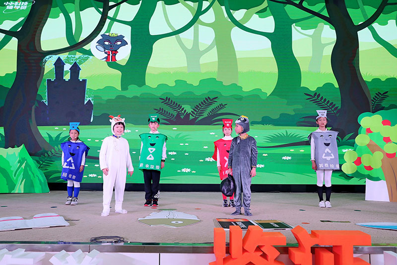 同時,小小科技輔導員們表演科普劇《青青草原保衛戰》、科學實驗《神奇的噴泉》、合唱《明天會更好》等節目,用形象化的方式為觀眾科普垃圾分類、生活中的化學等科學知識。