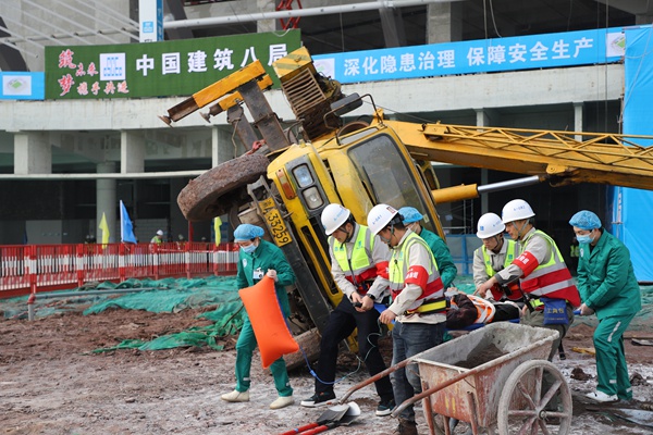 重慶市2021年房屋市政工程綜合應急演練視頻觀摩會現場。中建八局供圖