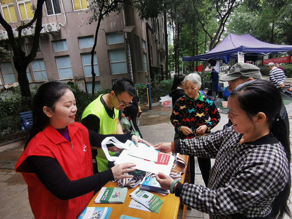 社區工作人員在小區開展違建整治宣傳。龍華社區供圖