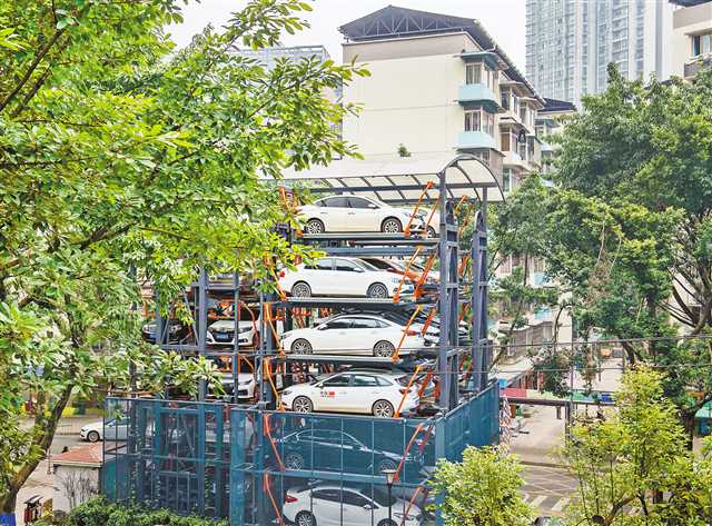 十二月七日,不少車輛停放在九龍坡區白馬凼老舊小區機械停車樓。記者 張錦輝 攝視覺重慶