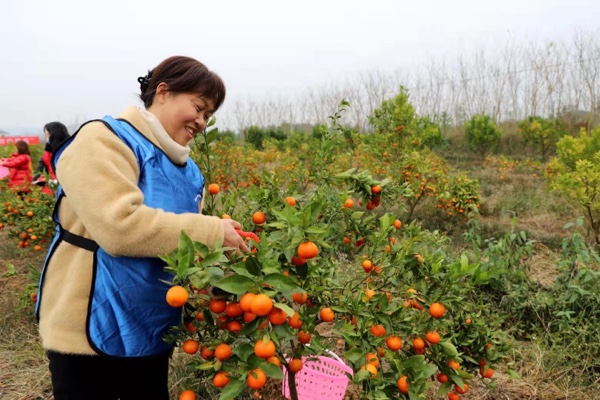 當天,大足、安岳分別派出的30名婦女,分成6個小組,來到大唐豐域生態農業的美國糖桔園。隨著一聲號令,兩地60名選手懷著飽滿的熱情,沖進糖桔采摘。手起剪落,一個個金黃的糖桔,迅速裝進填提簍......