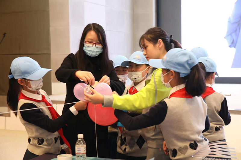 “地面課堂”線下活動則包含專題導覽和航天主題科學探究活動兩部分。在“宇航之夢”專題導覽活動中,重慶科技館依托宇航科技展廳火箭家族、空間站綜合演示等展項,帶領同學們感受中國飛天夢從無到有、從有到強的蛻變。在《發射吧!火箭》航天主題科學探究活動中,重慶科技館科技輔導教師引導同學們通過視頻教學、實驗及動手操作等方式,探索火箭發射原理,認識作用力與反作用力。其中,“一飛沖天”火箭制作環節,同學們利用所學知識制作火箭,模擬火箭發射過程,進一步加深了對作用力與反作用力大小和方向的理解,激發了對航空航天的向往和興趣。