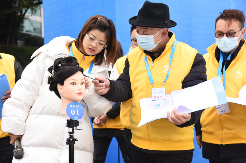 美發賽場裁判員為作品打分?;顒又鬓k方供圖