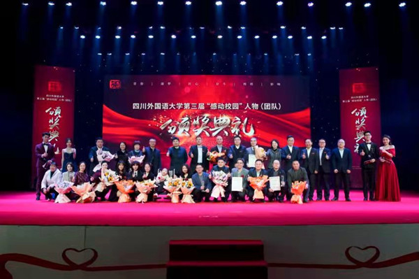 人民網重慶12月16日電 “今夜,我們贊頌優秀,也歌唱平凡;今夜,我們致敬崇高,也銘記感動!12月15日晚,四川外國語大學第三屆“感動校園”人物(團隊)頒獎典禮溫情上演,F場講述的6個人物和2個團隊“感動故事”給師生們上了一堂特別的思政課,讓大家心靈受到震撼。