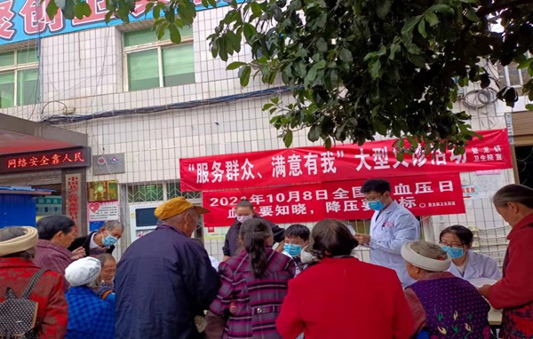 “老人家,你的血壓有點高,平常注意飲食,吃清淡點,要記得按時吃藥!濒啐堟傂l生院的醫生李曉霞對剛量完血壓的村民李軍(化名)說。九龍泉村村委會院前較平常尤為熱鬧,醫護人員正為村民義診、免費送藥品、設立咨詢臺、發放紀念品和宣傳資料……
