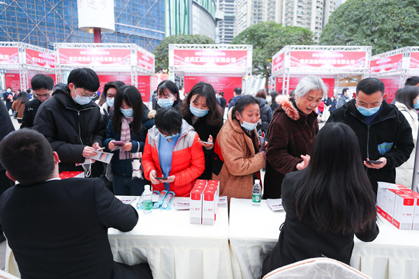 工作人員向居民介紹司法拍賣的流程和注意事項。重慶市一中院供圖