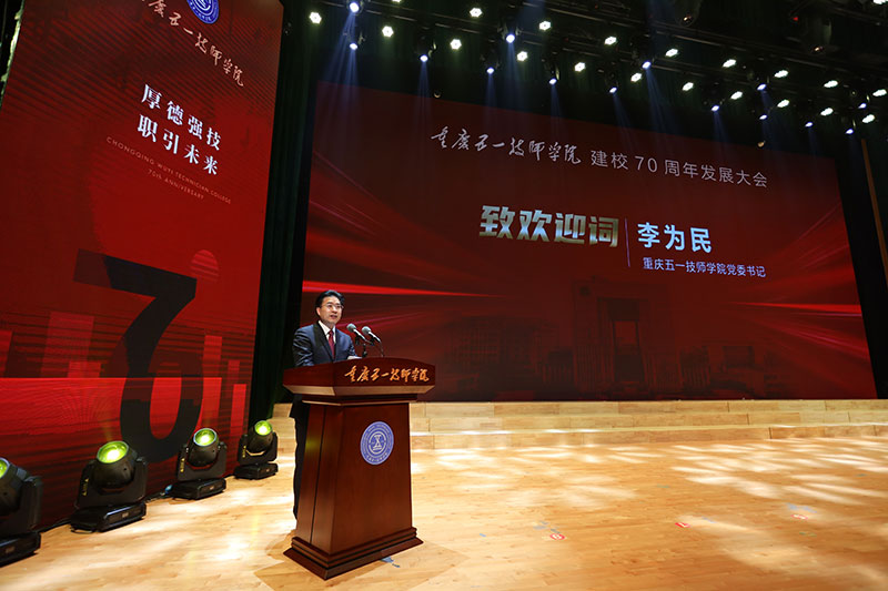 重慶五一技師學院黨委書記李為民致辭。重慶五一職業技術學院供圖