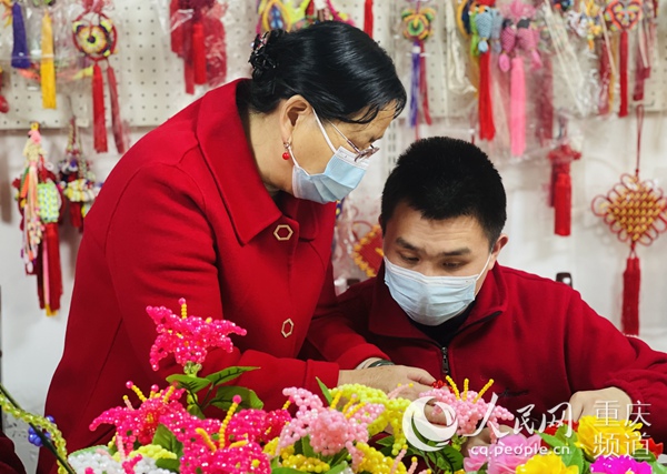 “這段時間因為疫情原因,工療站的活動安排較少,每次活動都只能幾個‘孩子’參加!睘榱俗尅昂⒆印眰儗W習的進度都一樣,田桂蘭通過視頻教學的方式,讓每個“孩子”在家也能學新樣式。
