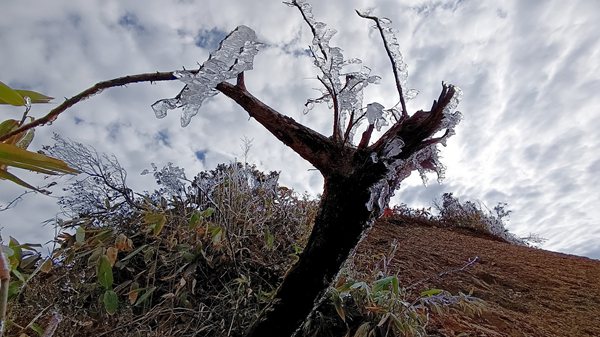 七曜山上懸掛著的冰凌子。東方物探西南分公司鉆井工程中心供圖