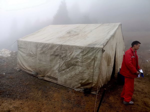 雨霧中,鉆井員工的宿營帳篷。東方物探西南分公司鉆井工程中心供圖