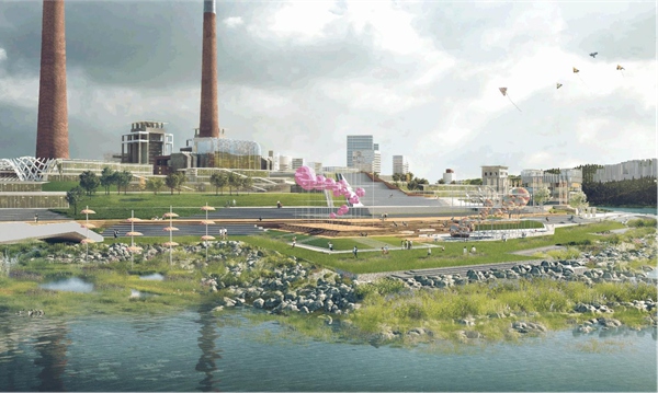 茄子溪段項目北至萬發碼頭、南至濱江路跨線橋、總長度2.4公里,總面積49.2公頃。結合港口的發展歷史和遺留下來的工業遺產,將港口文化代表的現代國際與潮流音樂代表的前沿藝術相融合,提出潮流音樂港的主題定位。針對現狀單調的線性空間,設計通過港口轉型,江岸活力道,生態環境微平臺等打造,打造一條具有韻律變化的潮音水岸,未來成為重慶聚集潮流文化的新地標。