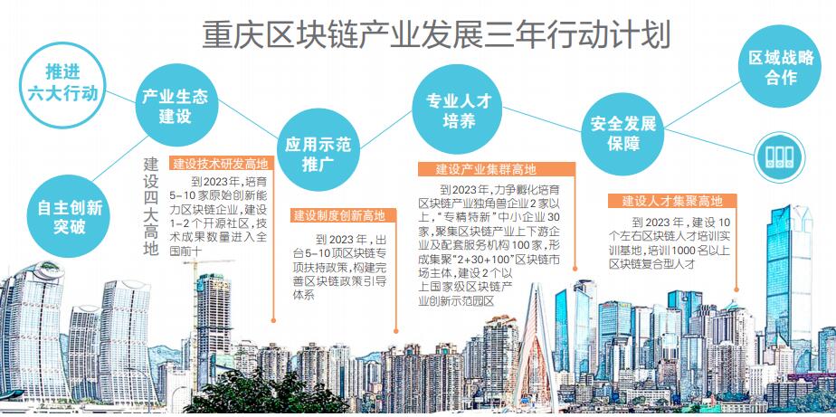 峰會上,《重慶市區塊鏈產業發展三年行動計劃(2021—2023)》(以下簡稱《計劃》)正式發布。