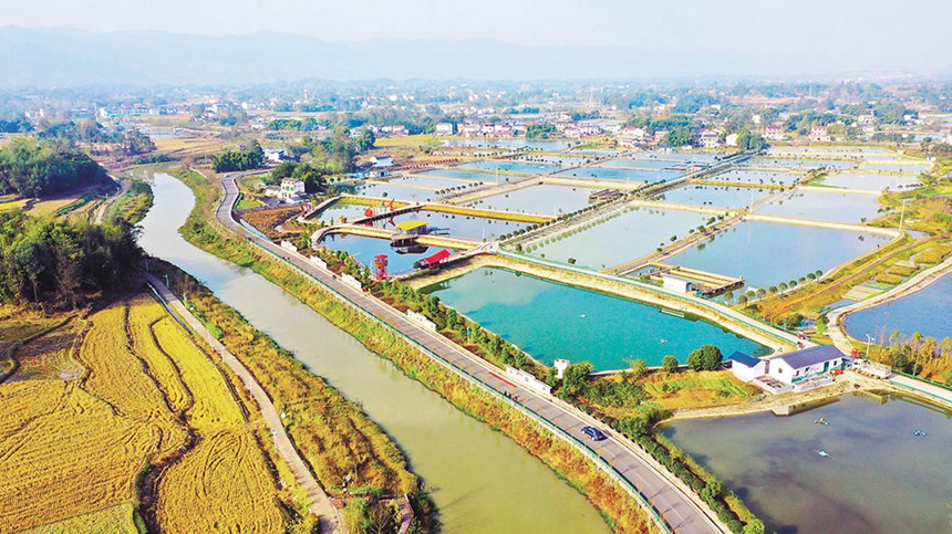 12月21日,梁平區禮讓鎮川西村,2020年度全國“十大最美農村路”——梁平漁米路與魚塘、稻田、河流、農房等構成美麗的田園畫。