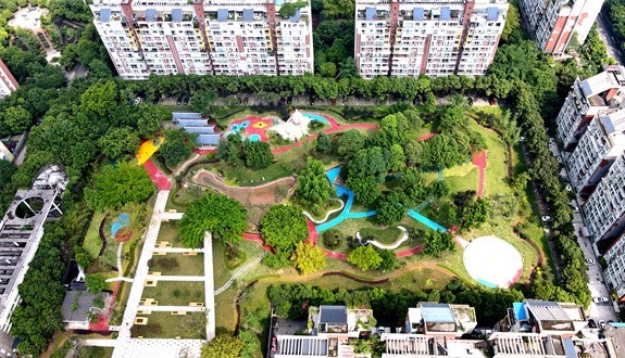“像是變‘魔術’一樣,太漂亮了!又好看又好耍,我每天都會帶著2歲的女兒到公園里騎車、玩滑梯,不少年輕人和老年人來跑步、鍛煉!毙^住戶曾紅對新公園贊不絕口。