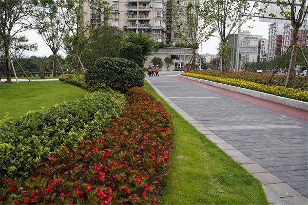 此外,北碚區還按照“一路一特色,一路一精品,一路一景觀”原則,將城區重要交通節點和主要干道的人行道整治與綠化景觀提升相結合,利用零星空地打造“眼可見、手可觸、身可入”的街頭綠地,拓展市民休閑空間,美化城市空間,開門見綠。2021年全區已完成雙元大道、康寧路、龍溪路、安禮路、云泉路等5個市級項目,提升面積7.6萬余平方米。