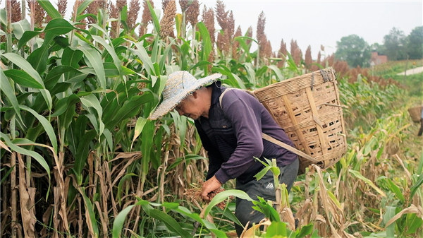 收割高粱的當地村民。朱勁松攝