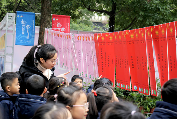 “金沙嘉陵才分清,打四字重慶區名!12月30日,在金山小學棲霞路校區至善廣場上舉行的教育集團辦學10周年成果展猜燈謎的現場,洋溢著濃濃的節日氣氛,已然是一片歡樂的海洋。
