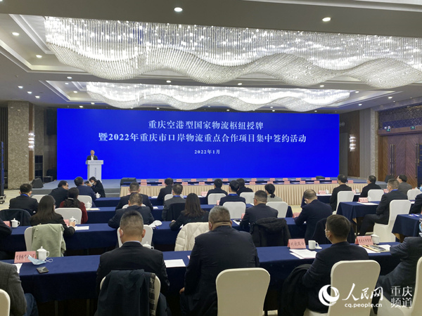 - 活動現場。人民網 劉政寧攝 人民網重慶1月4日電 (劉政寧)1月4日,重慶空港型國家物流樞紐授牌暨2022年重慶市口岸物流重點合作項目集中簽約活動在霧都賓館舉行!