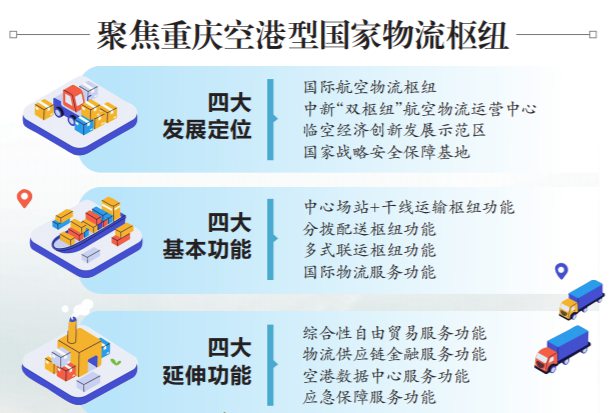 重慶空港型國家物流樞紐被納入“十四五”首批國家物流樞紐建設名單,全國共25個樞紐入選。重慶空港型國家物流樞紐建設方案的編制和申報由渝北區、重慶機場集團、保稅港區成立的申報專項工作小組具體負責。