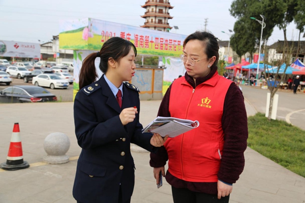 重慶市潼南區稅務人員(左)向陳摶故里旅游開發有限公司副總經理李莉(右)宣傳稅收優惠政策。歐進攝