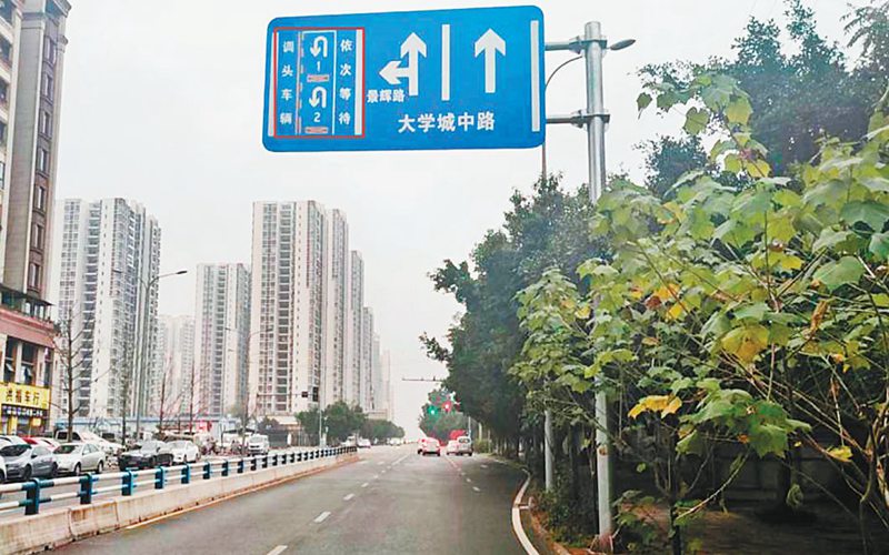 在大學城盛德路景輝路路口,已標注出串聯掉頭標志。(沙坪壩區公安分局供圖)
