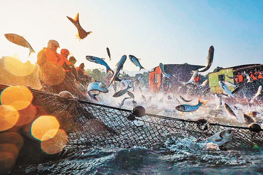 2021年10月24日,長壽區長壽湖,大洪湖水產公司的工人正在捕魚。通訊員 樊強 攝/視覺重慶