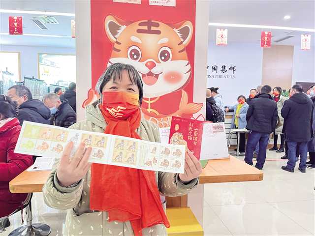買到虎年生肖郵票的市民十分開心 攝/黃倩
