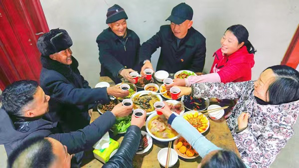 “今年子硬是好,團年人氣旺,明年還會更好,歡迎鎮上村上的領導和黨員來到我屋里喲!编嵏4盒Φ醚劬Σ[了縫。