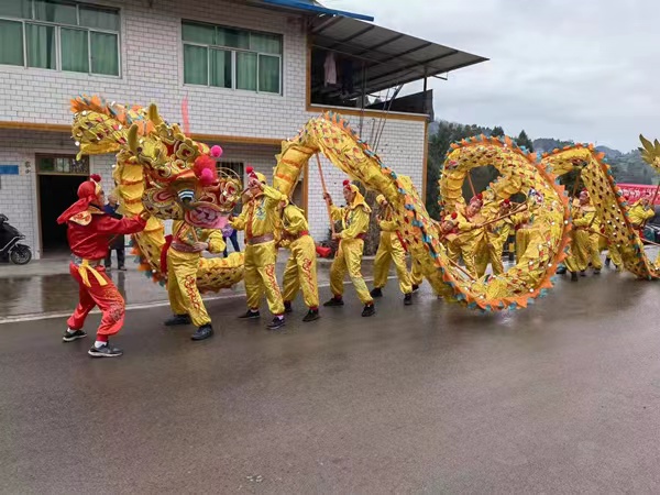 上午9時,舞龍活動正式開始。由25名隊員組成的舞龍隊從中樂村便民服務中心出發,翻山越嶺,將沿途到村轄區6個組開展舞龍活動,將祝福送到村民家門口。