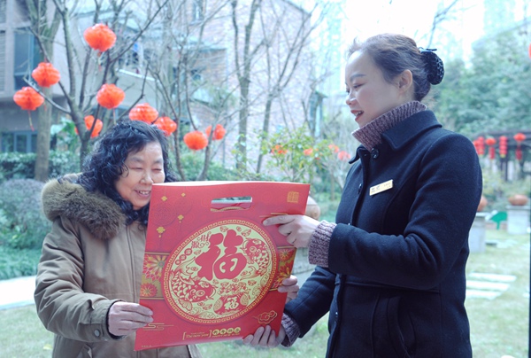 此外,他們還開展“送!被顒,將裝著春聯、年畫和臺歷的福袋挨家挨戶送到業主家中!懊康侥觋P總能收到物業送來的小禮物,我們很喜歡!睒I主張女士接過福袋,笑得眼角彎彎。