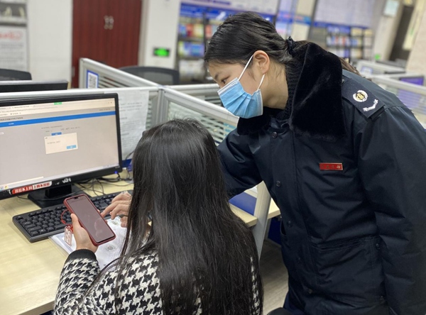 2月7日,重慶市黔江區辦稅服務廳工作人員輔導市民通過線上渠道辦理稅費業務。 陳瑤攝