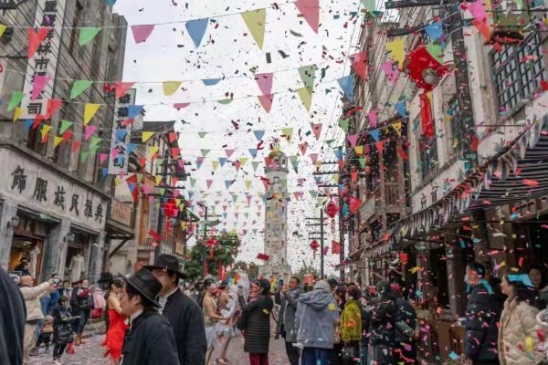 兩江影視城同樣大受歡迎,春節期間,不僅有豐富多彩的民間年味游戲、最傳統的民俗表演、更有全新開放的二期項目《霧都大片場》在春節期間限時免費體驗,給游客帶來豐富的沉浸式新體驗,不少游客直呼過癮!